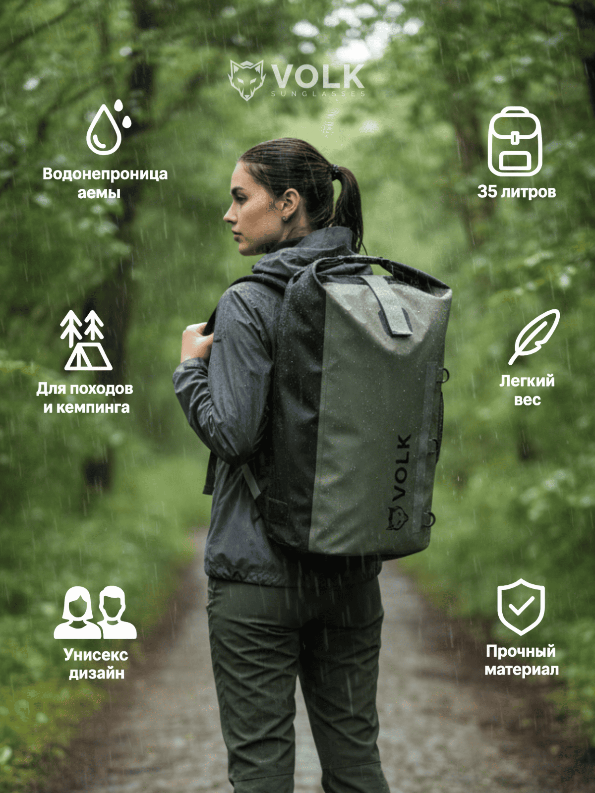 VOLK PACK одинаково удобен для походов, кемпинга, SUP и рыбалки, а также для повседневного использования в городе. Современный минималистичный дизайн и комфортные лямки делают его универсальным выбором для мужчин и женщин.